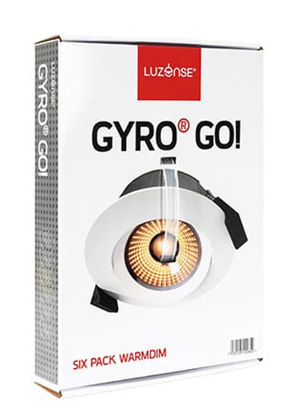 Gyro Go! är en modern 8W lågprofils downlight. Kraftig prestanda i kombination med bländfri linsteknologi. Dimmbar till mycket lågt nivå. Levereras komplett med dimmbart LED-drivdon med instick-klämmor och integrerad dragavlastning i lock. Kan övertäckas av isolationsmattor. Ra> 90, IP44, Klass II. 2700K, 8W / 700 lumen, spridningsvinkel: 40°, Tilt 25° i alla riktningar.