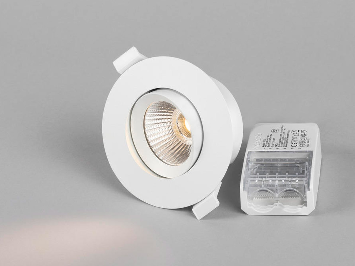 Modern LED- och reflektorteknik med väl avbländad ljusbild och högt ljusflöde. Tiltbar 30°, vilket även gör den till det perfekta valet för vinklade tak. Mycket god färgåtergivning, Ra>95. Drivdon med lock som verktygslöst anpassas för kabel eller flexslang 16mm. 3-polig snabbplint för vidarekoppling samt dragavlastning. Armaturen är dimbar med de vanligaste dimrarna på marknaden.