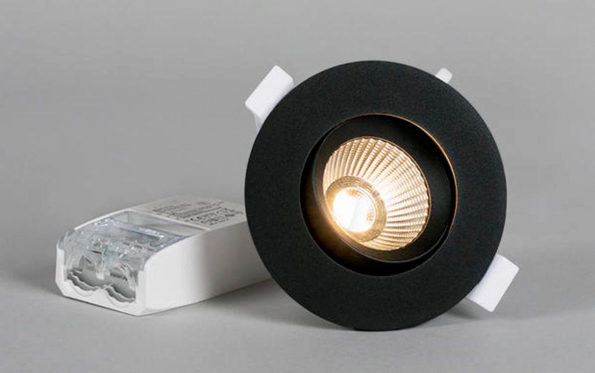 Drivdon med lock som verktygslöst anpassas för kabel eller flexslang 16mm. 3-polig snabbplint för vidarekoppling samt dragavlastning. Armaturen är dimbar med de vanligaste dimrarna på marknaden.