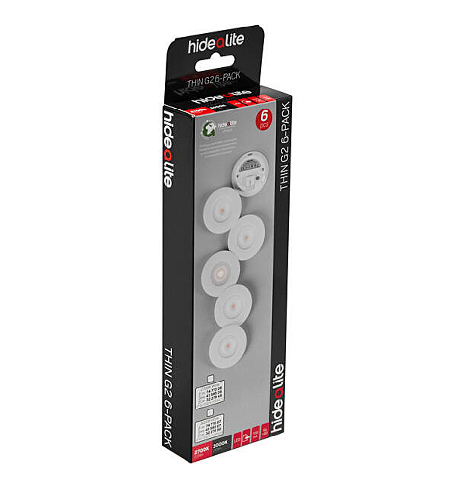 Hide-A-Lite Downlight Thin G2 Vit i 6-pack till reducerat pris , Detta är 2:a generationen av denna tunna och mycket populära downlight från Hide-A-Lite.