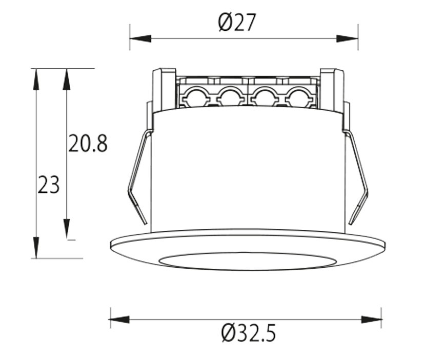 Paket med mindre downlight på 1,2W och en diameter på 32,5 mm, låg energiförbrukning och lång livslängd. Denna downlight ger ett snyggt accentljus med 105 graders spridning och ljusflöde på 113 lumen, med inbyggnad på 23 mm kan downlighten användas för infällt montage i hyllor, skåp, fönstersmyg och mycket mer. Armaturen levereras med snabbkoppling. Använd drivdon ur Designlights sortiment.