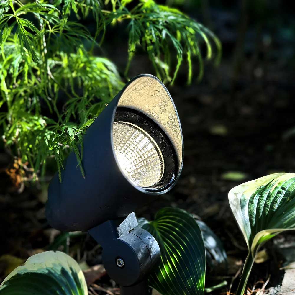Den kraftfulla markspotten Cosmo är byggd för att erbjuda stora och höga träd ordentligt med ljus. Den lite smalare spridningsvinkeln gör att ljuset når längre och ändå, på lite avstånd, kan breda ut sig över en trädkrona.