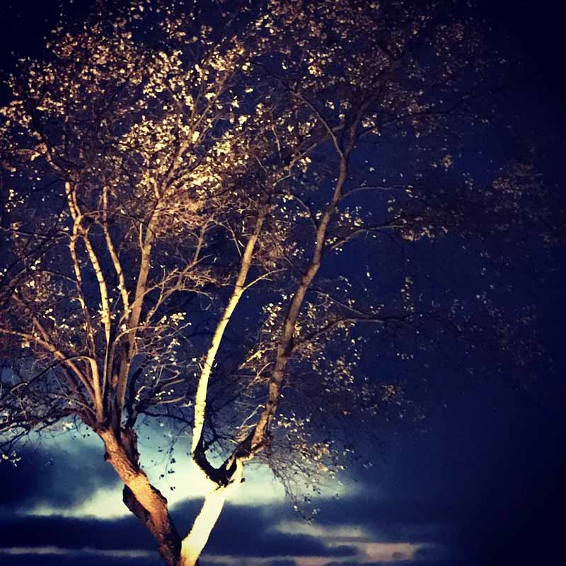 Placera lampan direkt under ett träd för att få en vertikal ljuspelare som sträcker sig högt upp i kronan. För en bredare ljusspridning och täckning av större ytor kan lampan som sagt placeras längre bort från objektet som ska lysas upp.