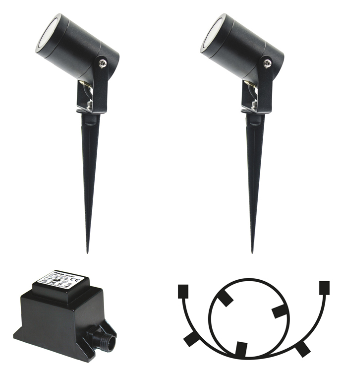 Ett enkelt sätt för dig som vill mjukstarta ditt ljusprojekt i trädgården. Det ingår en större transformator för att kunna bygga ut ditt system i framtiden, en kabel och två stycken svarta Luna markspottar.