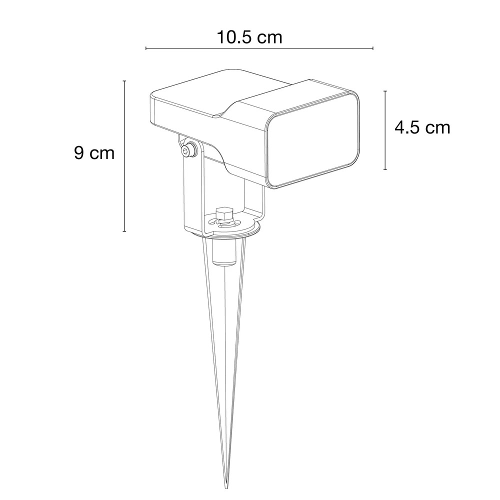 Lampan är det perfekta valet för belysning av bredare objekt såsom tex ett rhododendronbuskage eller mindre träd med bred krona. Den passar även utmärkt längs häckar, murar och fasader.