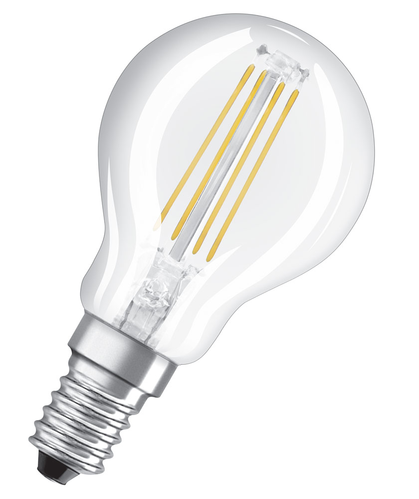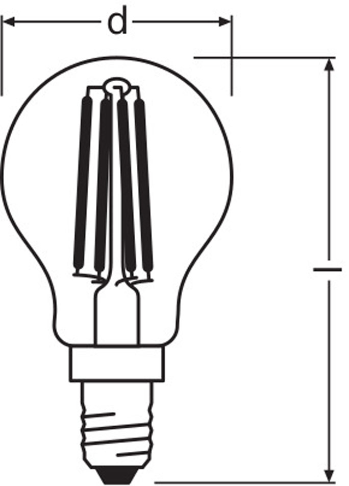 Ledvance dimbar klotlampa med liten sockel (E14) tillverkad helt i glas med filamentteknik. Utseende och känsla som en traditionell glödlampa. Snabb tändning – 100 % ljus direkt. Bra färgåtergivning och lång livslängd. Idealisk för dekorativa installationer, applikationer i hemmet och allmänbelysning.