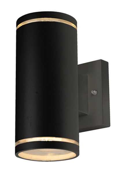 Livali II väggarmatur svart 2xGU10 Väggarmatur i formgjuten aluminium med en antikorrosionsbehandlad yta med pulverlack. Bestyckad med GU10 sockel. Ned- och/eller uppljus med ett bländskydd i klarglas. Montage Passar för montage med rörutlopp på vägg utomhus eller inomhus. Lämplig för Belysning på fasader, entréer etc.