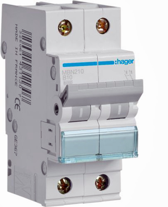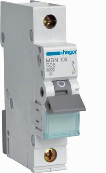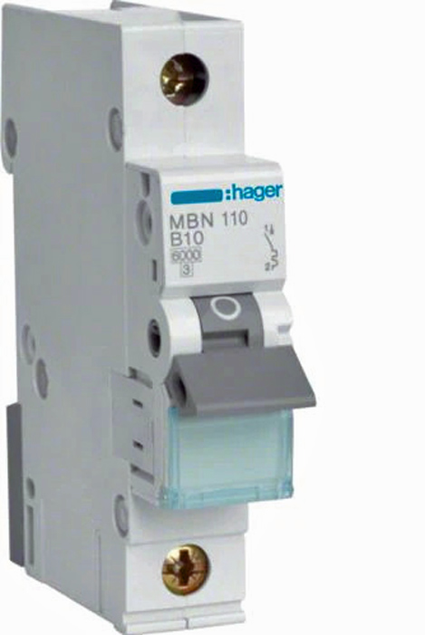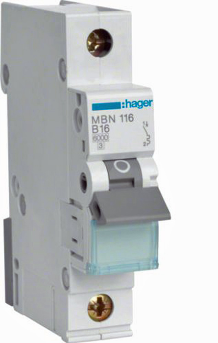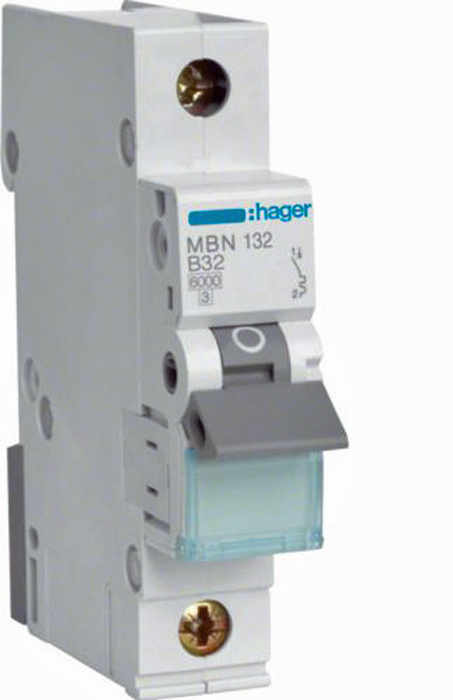 Hager dvärgbrytare* MBN B-karakteristik med skruvanslutning av utgående ledare.
