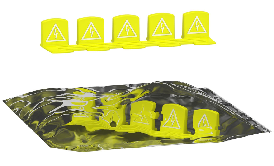 Schneider beröringsskydd, Resi9, för skydd av reservplatser på fasskena R9XFHxxx, förpackning med 4 stycken rader á 5 moduler