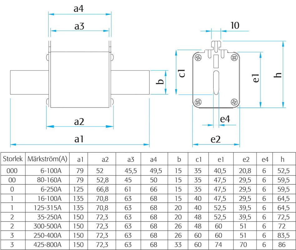 Keramikhöljet i steatit ger hög termisk chockbeständighet och optimal värmeledningsförmåga. Kontaktknivarna är av koppar eller kopparlegering som ger hög ledningsförmåga och lågt kontaktmotstånd. Knivarna är försilvrade för bästa kontakt och lågt övergångsmotstånd.