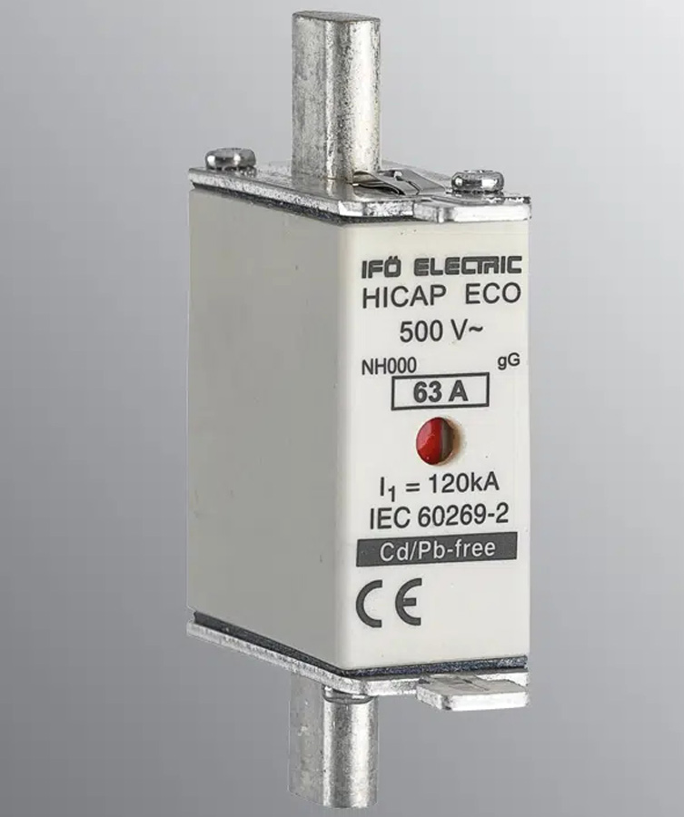 Hicap Eco gG 500V storlek 000 (NH000) från Ifö Electric är en miljövänlig knivsäkring för ledningsskydd fri från bly och kadmium.
