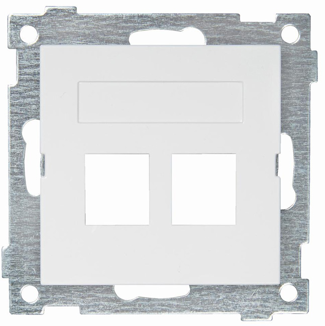 Plåtstödsram med anpassat mönster för kombinationsmontage. Plats för två jack. Om endast ett jack skall monteras, komplettera med blindplugg.