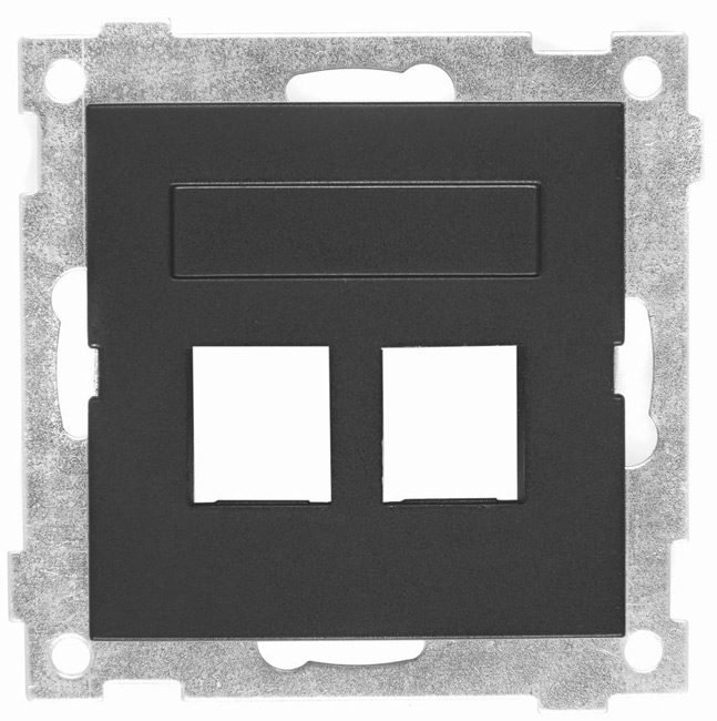 Plats för två jack. Om endast ett jack skall monteras, komplettera med blindplugg. Dammluckan som följer med Gigamedia SLIM-jack kan med fördel användas. Korrekt anpassad svart färg till Elkos produkter. Mått: 55mm x 55mm (H x B)