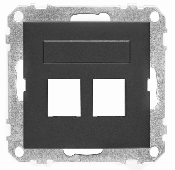Plåtstödsram med anpassat mönster för kombinationsmontage. Plats för två jack. Om endast ett jack skall monteras, komplettera med blindplugg.