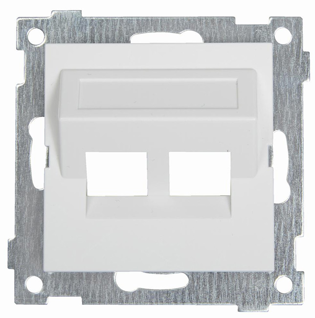 Korrekt anpassad färg och glans. Försänkning för 9mm märktape. Plåtstödsram med anpassat mönster för kombinationsmontage. Plats för två jack. Om endast ett jack skall monteras, komplettera med blindplugg art 5126213.