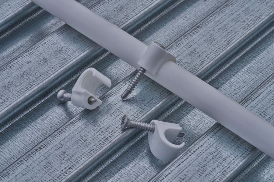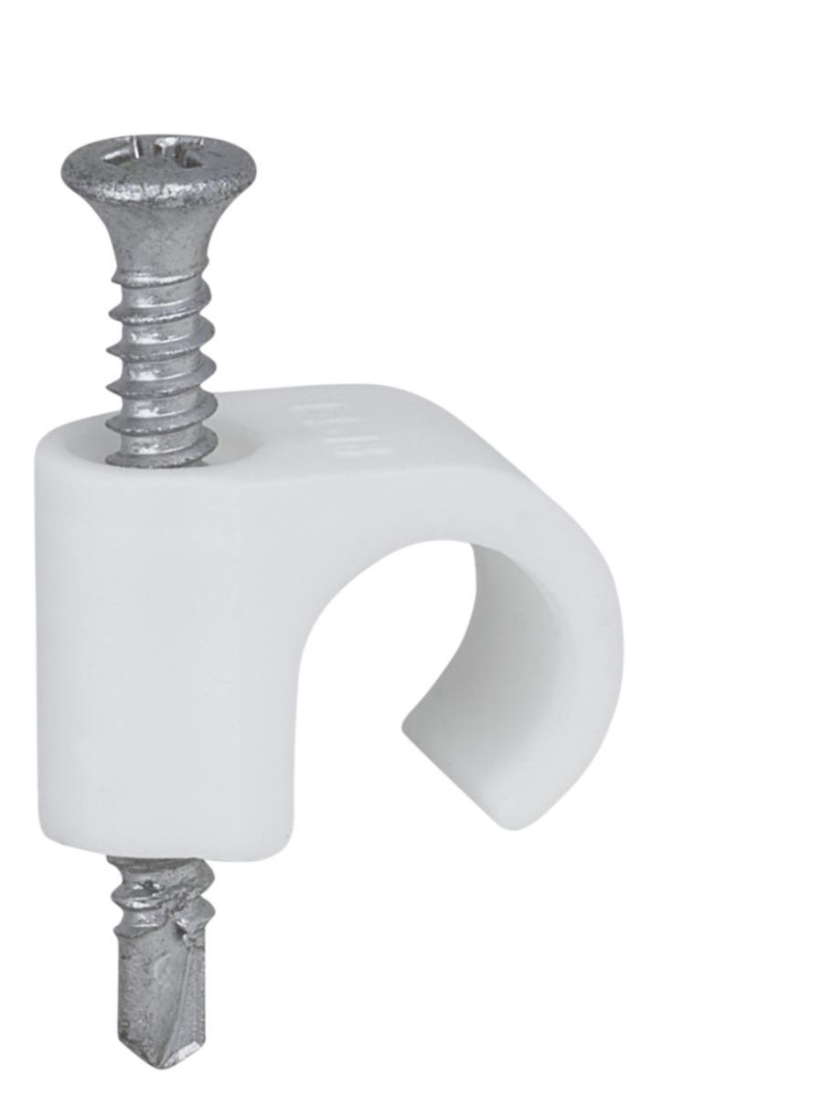 För runda kablar/rör 14-18mm/18-22mm i färgen Vit. Kraftig skruv 4,8x40mm med borrspets vilket gör den lämplig för montage direkt i plåt max 2,0mm, rekommenderat varvtal: 1500-2500/min.