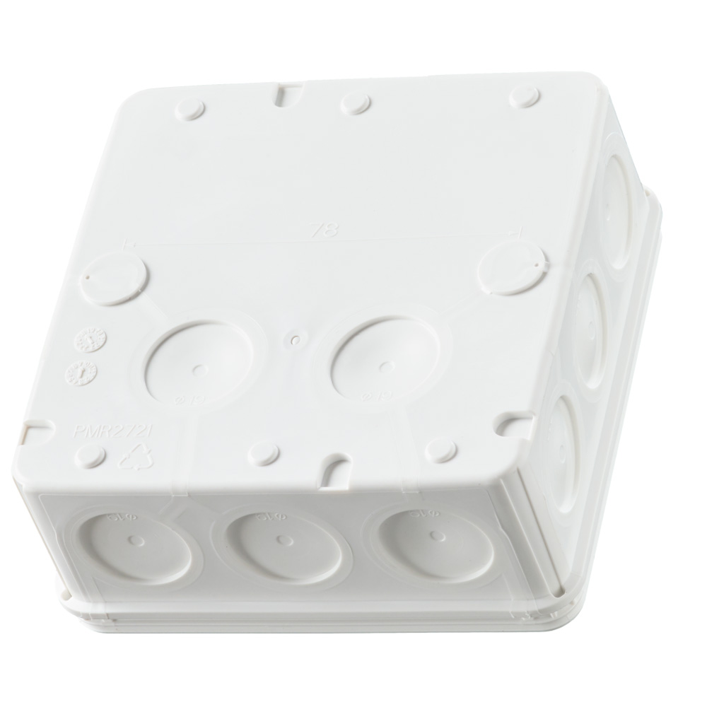 Vit tvåkomponent kopplingsdosan AP10 (6 mm², 500 V) är försedd med inbyggda "strypnipplar"; 10 st. införingar i sidorna och 2 st. i botten. Man för in kabel genom att trycka igenom membranet och kabeländorna.