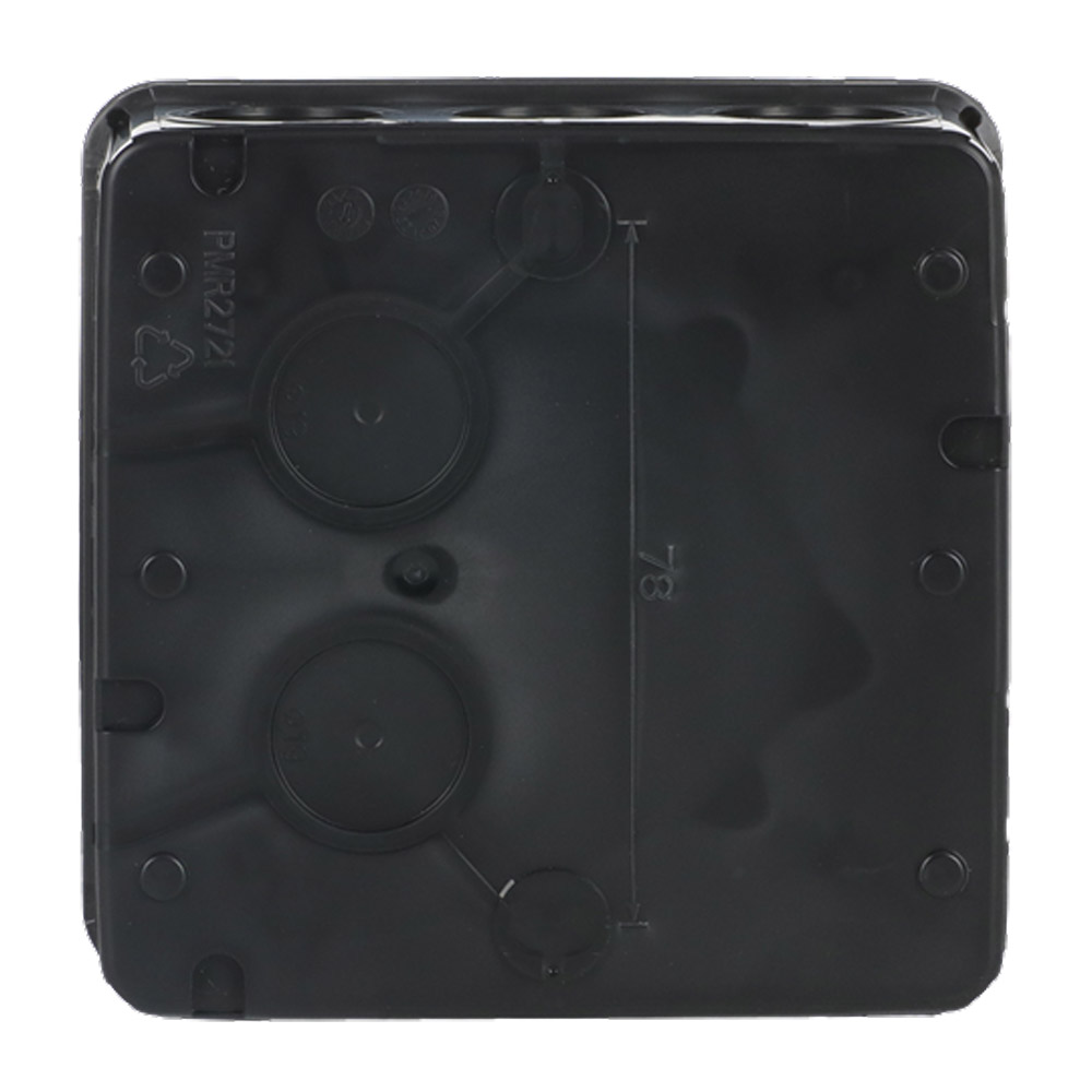 Svart tvåkomponent kopplingsdosan AP10M (6 mm², 500 V) är försedd med inbyggda "strypnipplar"; 10 st. införingar i sidorna och 2 st. i botten. Man för in kabel genom att trycka igenom membranet och kabeländorna.
