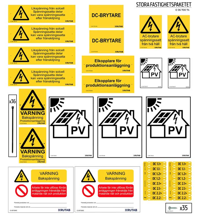 Märk-kit anpassat för uppmärkning av en solcellsanläggning i större fastighet.