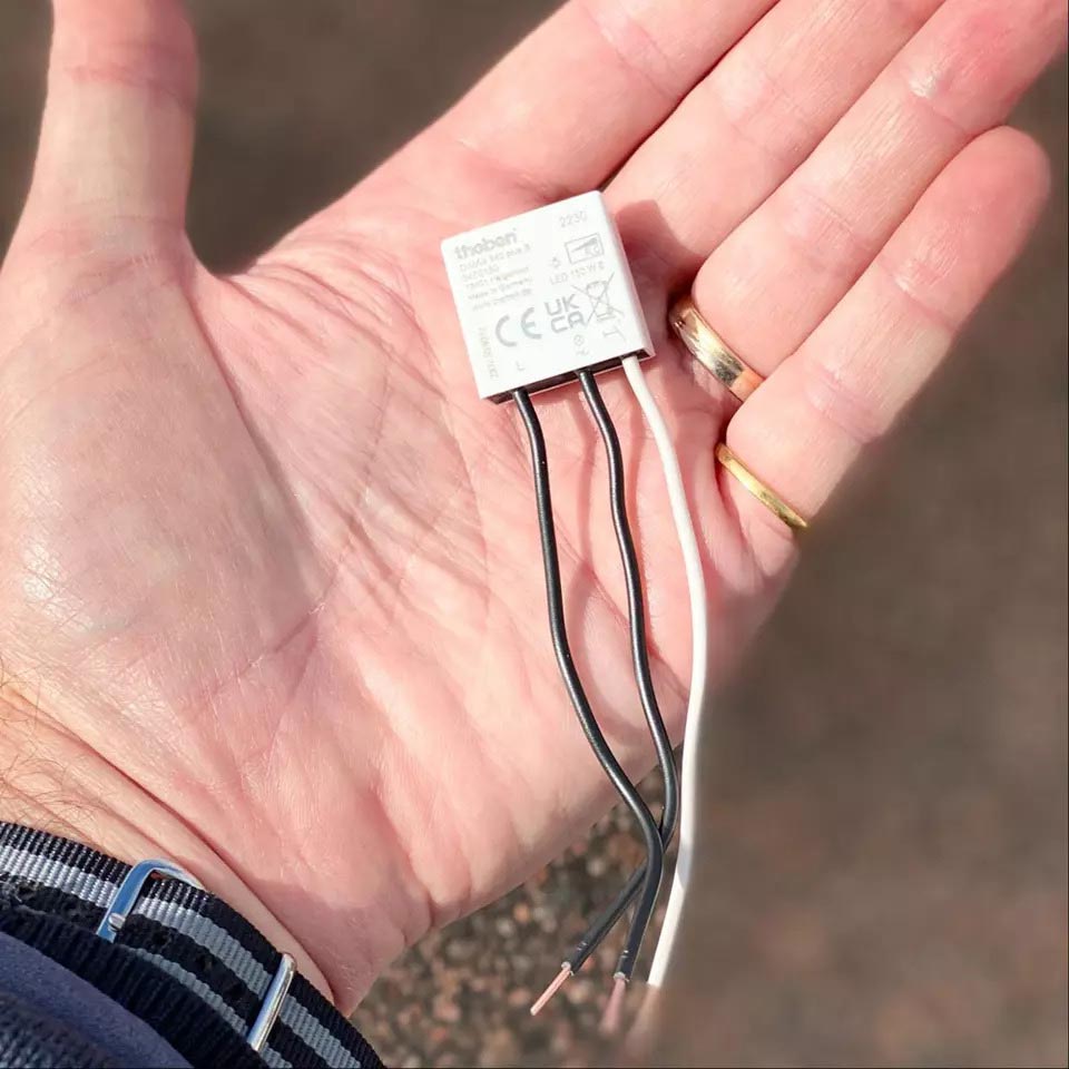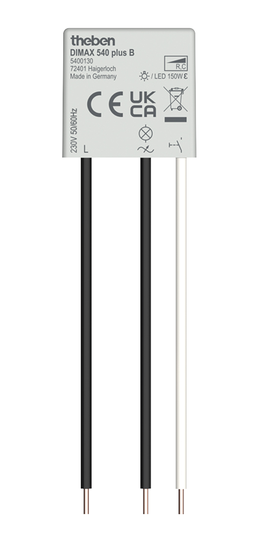 DIMAX 540 plus B är en av de absolut minsta dimmrarna för dosmontage på marknaden idag. Styrs med en återfjädrande tryckknapp. Klarar 150W ledbelastning med bakkantdimring. Ansluts utan nolla.