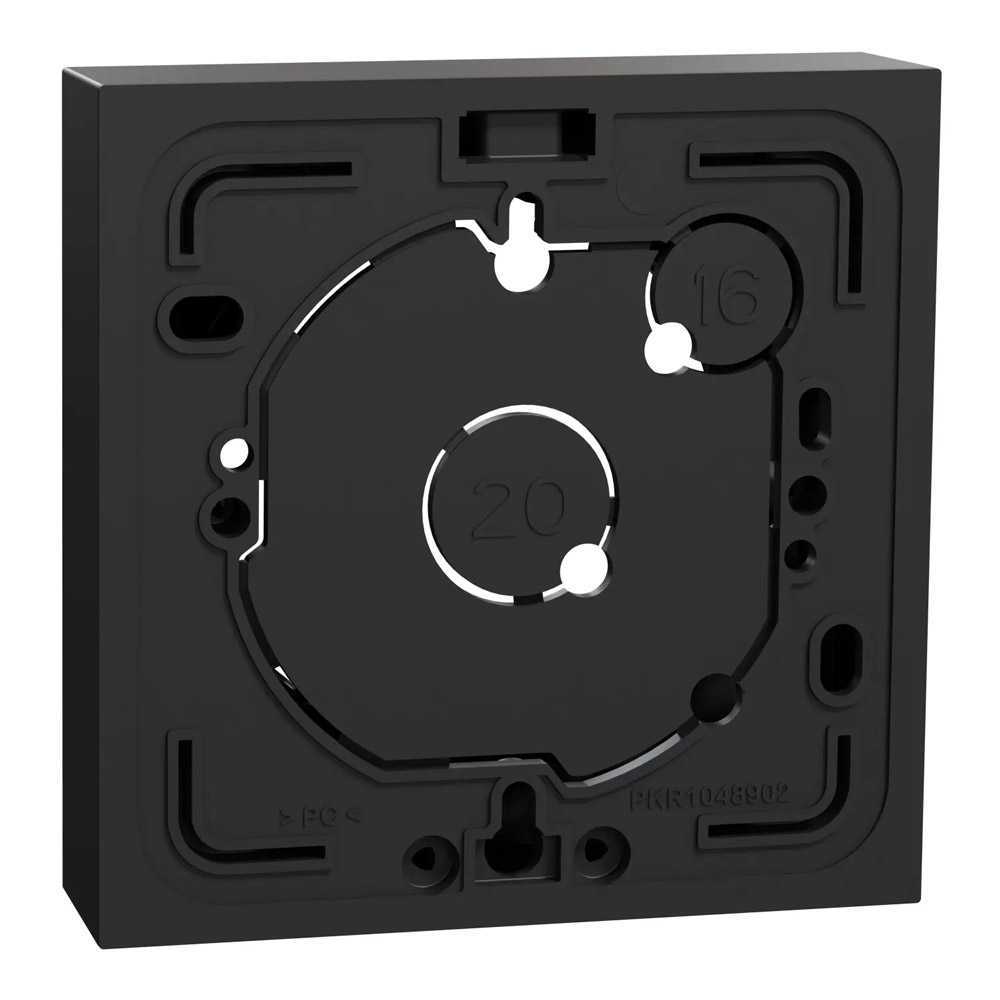 Den utanpåliggande boxen kan monteras direkt på väggen eller ovanför en befintlig dosa och knocked-out kan slås ut.