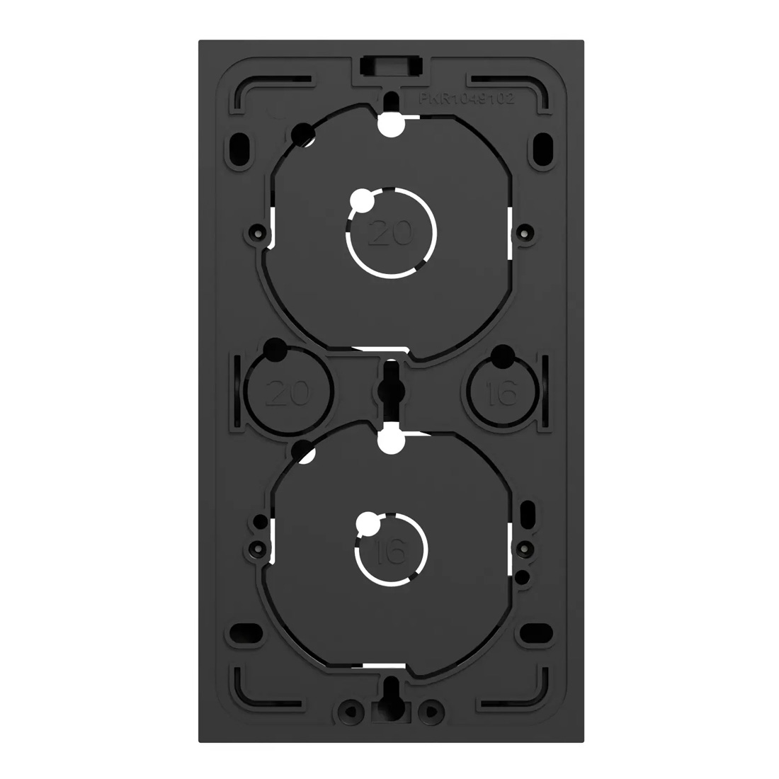 Den utanpåliggande boxen kan monteras direkt på väggen eller ovanför en befintlig dosa och knocked-out kan slås ut.