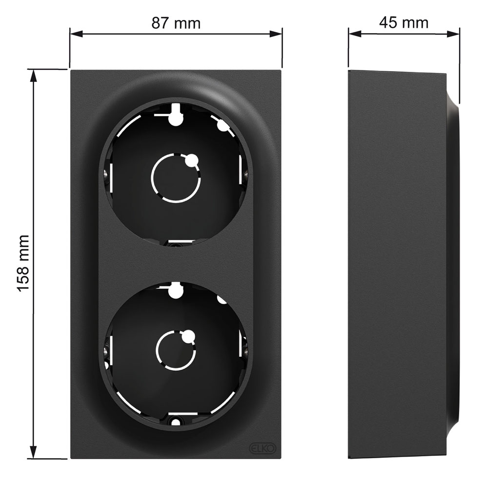 Måtten på produkten är (B) 87 mm x (H) 158 mm x (D) 45 mm. se bild