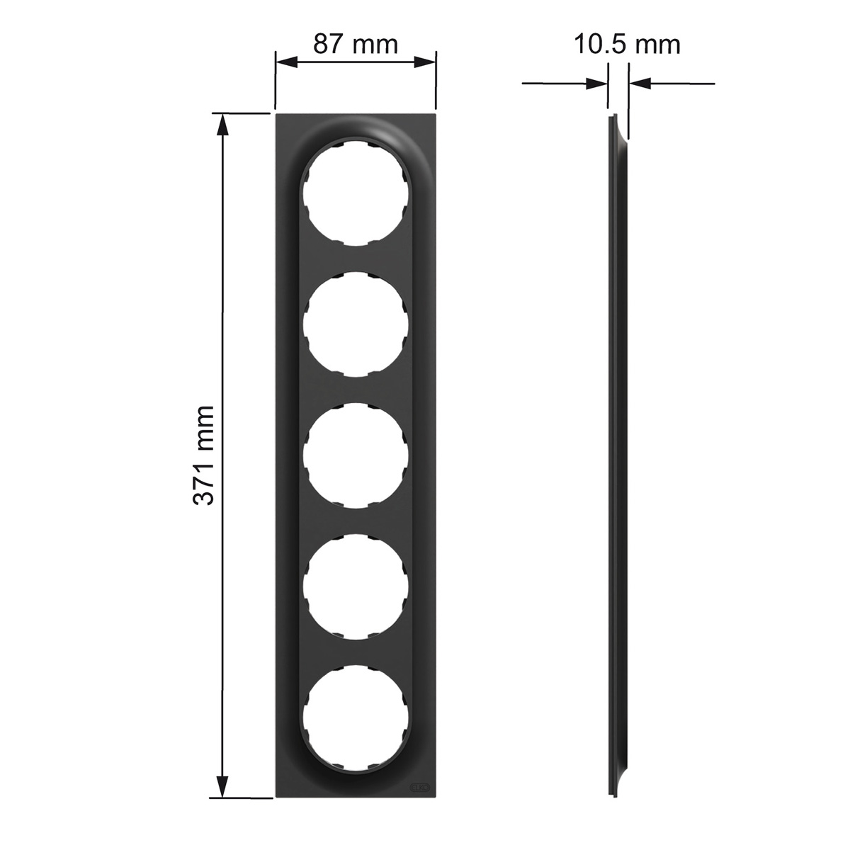 5-fack kombinationsram Svart till ELKO One strömställare, detta är standard ramen som passar alla svarta Elko One strömställare och 1-vägs vägguttag,lamputtag för vägg, timer, blindlock mm samt produkter med cirkulär c-platta utan ram