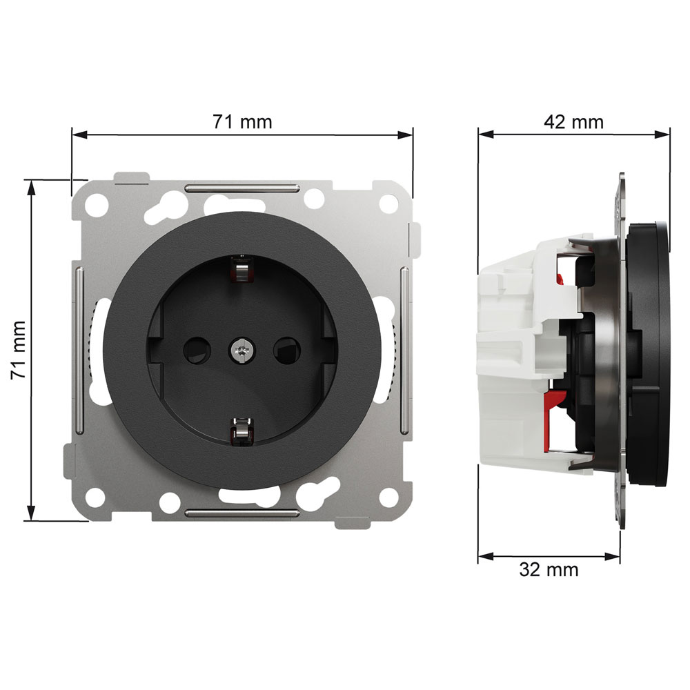 Uttaget har snabbkoppling med trådingång från sidan för enkel installation och är klassat enligt IP21 samt IK06 för slagtålighet.