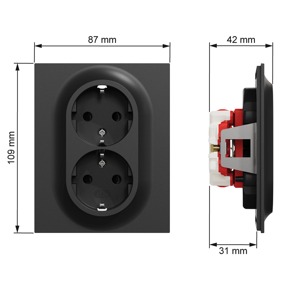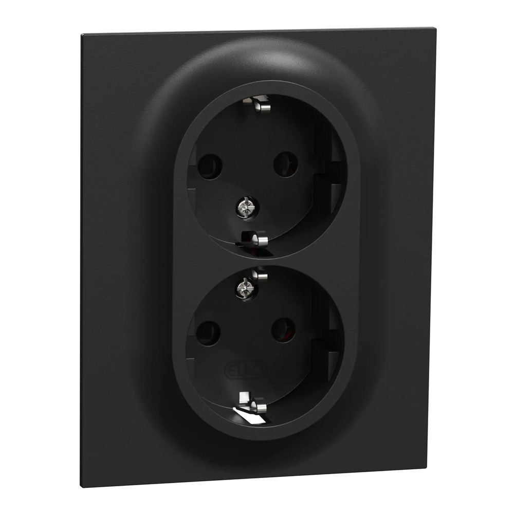 Elko One 2-vägs svart vägguttag, i lågt, slimmat och stilrent.