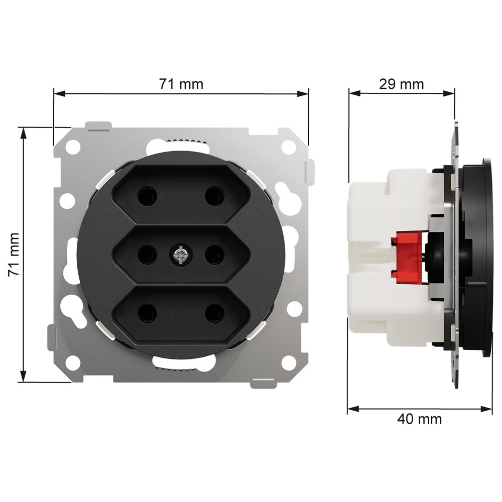 Svart Elko One 3-vägs Euro vägguttag utan ram