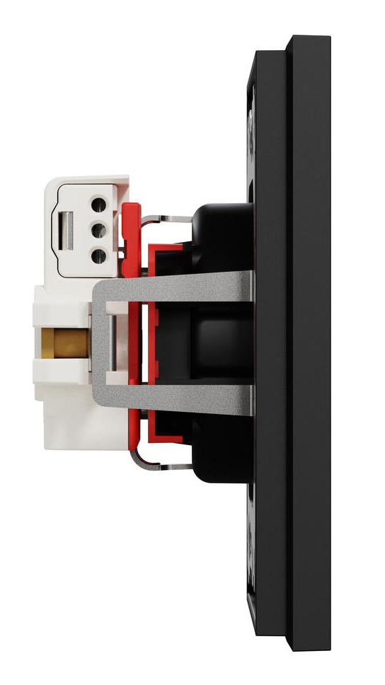 Sockel, täckplatta och ram av halogenfri termoplast.