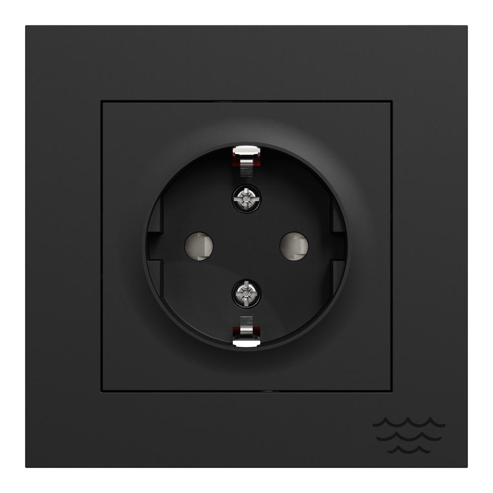 1-vägs jordat vägguttag ELKO Plus svart Ocean Plastic, för infällt montage i vanlig apparatdosa.