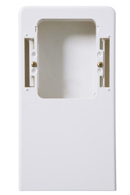 Av halogenfri termoplast. Med snäppfastsättning av kåpan. Passar ihop med ELKOs infällda produkter i renvit färg såsom uttag för stark- och svagström. Det låga 2-vägsuttaget passar ej, finns däremot som komplett produkt.