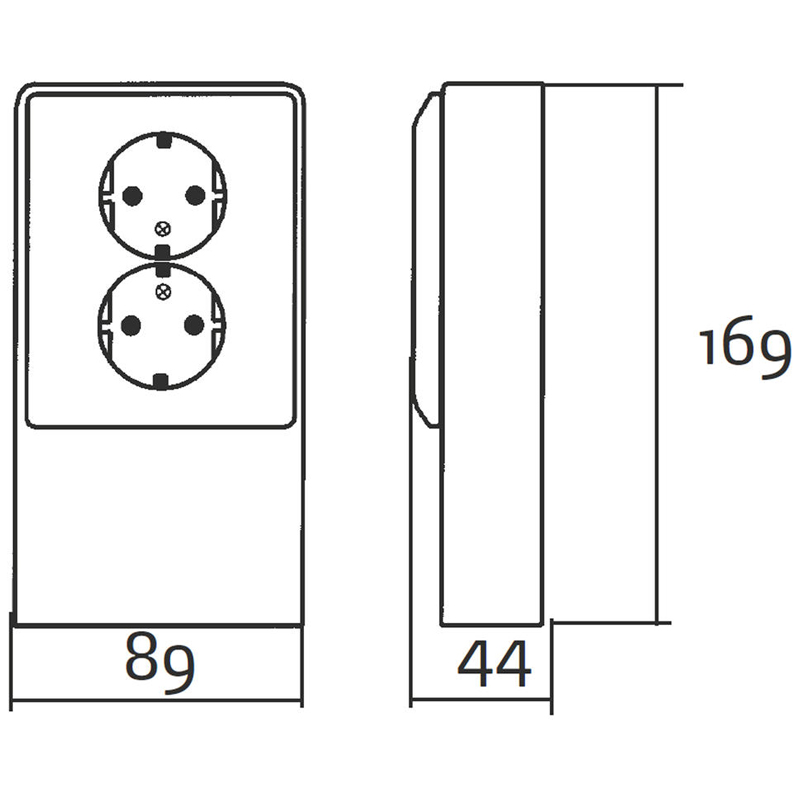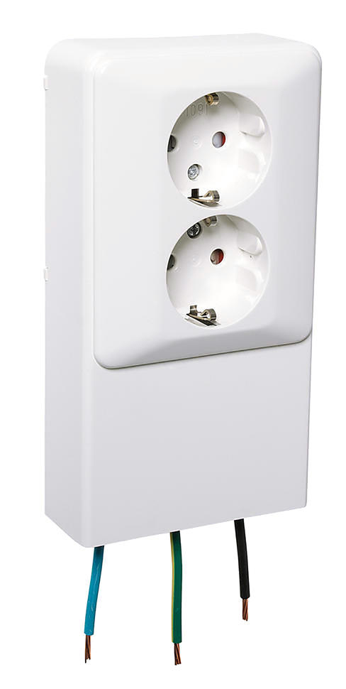 Sockeldosa med uttag 2-vägs 16A/230V för utanpåliggande montage. Renvit.