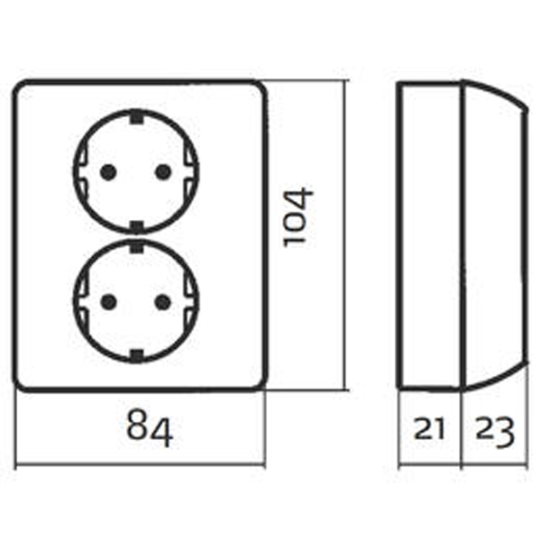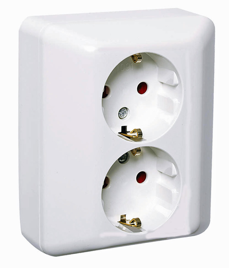 Kan monteras på dosa eller direkt på vägg. Vid montage på dosa finns möjlighet att gå vidare med utanpåliggande kabeldragning. Sockel, lock och förhöjningsram är av halogenfri termoplast. Dubbla anslutningar per fas. Skruvanslutning av ledarna med hissklämmor.