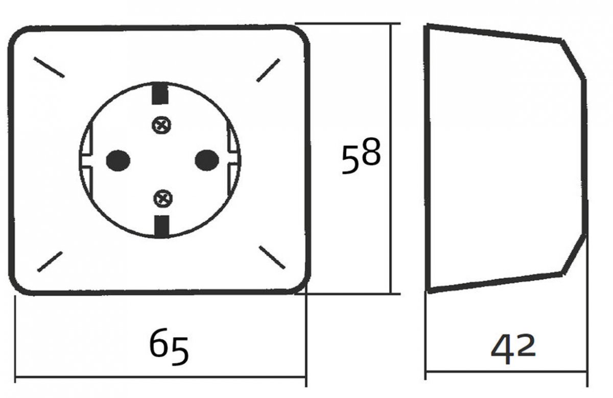 Mattsvart jordat uttag, utanpåliggande. Sockel, lock och bottenplatta av halogenfri genomfärgad svart termoplast. Dubbla anslutningar per fas. Bottenplattan har ursparingsmarkeringar för 16 mm rör. Plats för två st extra överkopplingsklämmor