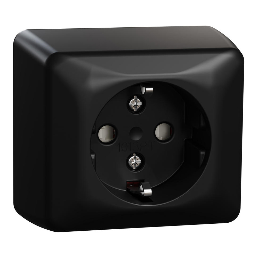 Vägguttag 1-v "RS-SKRUV" för utanpåliggande montage genomfärgad haolgenfri Svart plast. Skruvkoppling, med jord, dubbla anslutningar per fas.