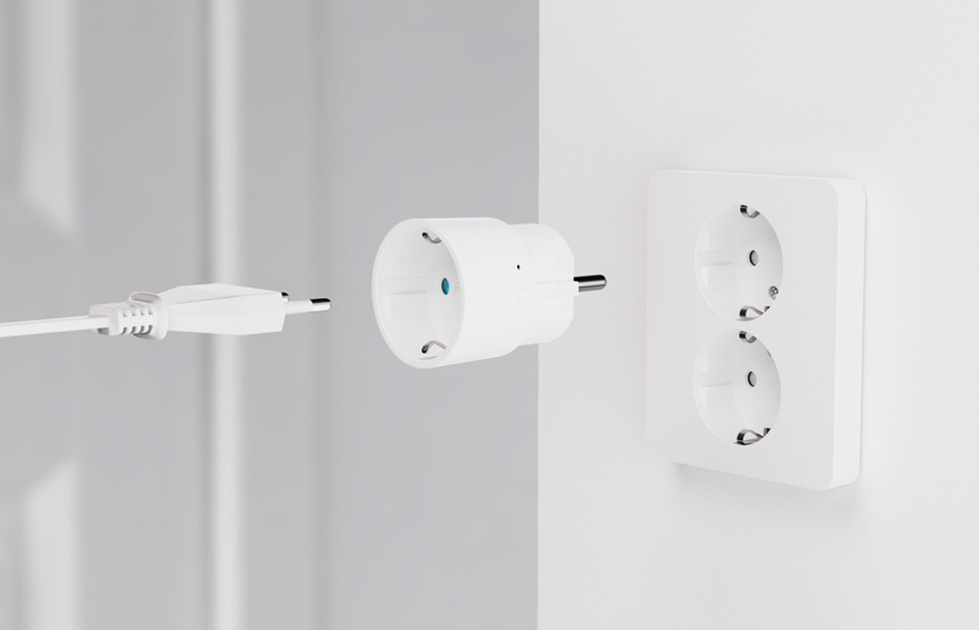 Smart plug on/off placeras i eluttaget för att slå på och av belysning och annan apparatur. Smart pluggen är ej dimbar.