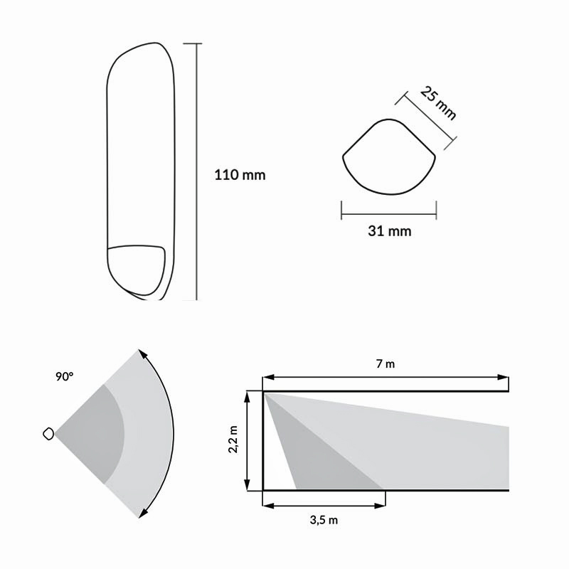Den har en detekteringsräckvidd på upp till 7 meter och ett batteri med upp till 10års beräknad livslängd.