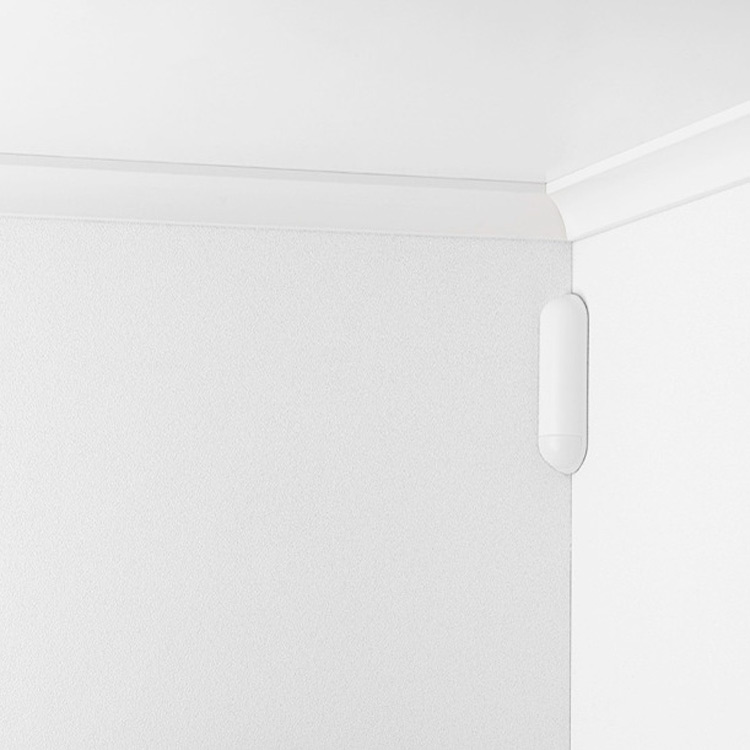 Plejds trådlösa WMS-01 rörelsevakt är enkel att placera i hörnet av ett rum med skruv eller den medföljande dubbelhäftande tejpen. Med ett synfält på 90 grader ser den ett helt rum samtidigt som dess diskreta design inte drar uppmärksamhet till sig.