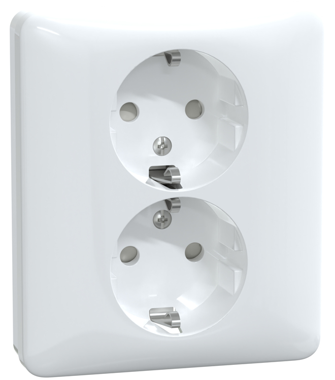 Uttaget bör avsäkras med 2-polig dvärgbrytare för att säkerställa brytning av båda faserna. Skruvanslutning, petskyddat, för infälld montering i apparatdosa c/c 60mm. För utanpåliggande montage används dosa 22mm. Vit