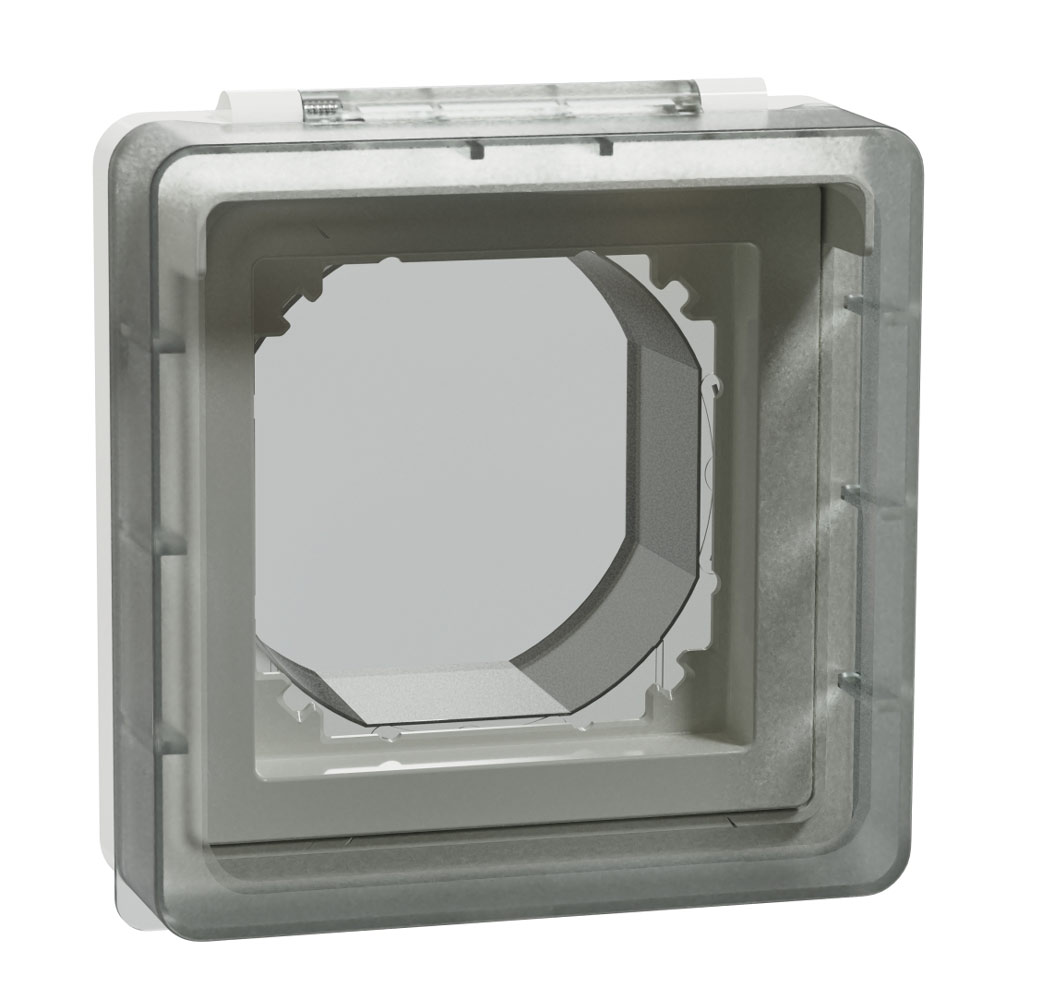 Exxact täckram med transparent lock IP44, för montering av infällda produkter i IP44 miljö. Kan användas både för utanpåliggande och infällt montage.