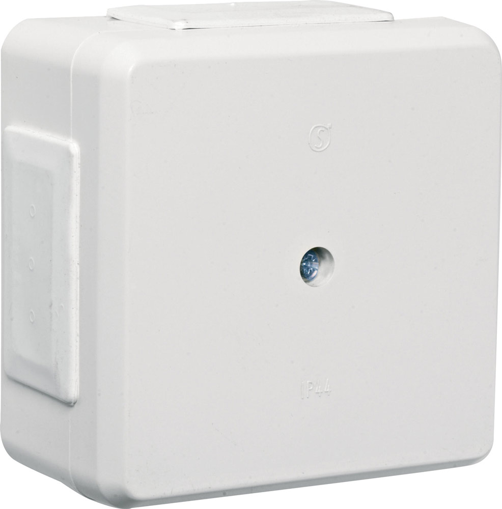 Skjöljtätt utförande IP44. Av termoplast. Klarar brandkraven för montering i ladugårdar, UL94. Plats för en st kopplingsplint 5x2,5mm2 eller lösa kopplinghsklämmor. Membrannipplar för två kablar på varje sida. Halogenfri.