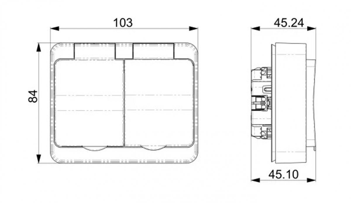 Tekniska dataMontering: Inom / UtomhusMärkspänning: 250VACMärkström: 16AFärg: Svart RAL9017Anslutningsklämmor: Snabbanslutning 1,5-2,5mm² Montagesätt: Infällt i apparatdosa c/c 60mmKapslingsklass: IP44Material: Halogenfri termoplastCertifikat: CE, Semko, RoHS